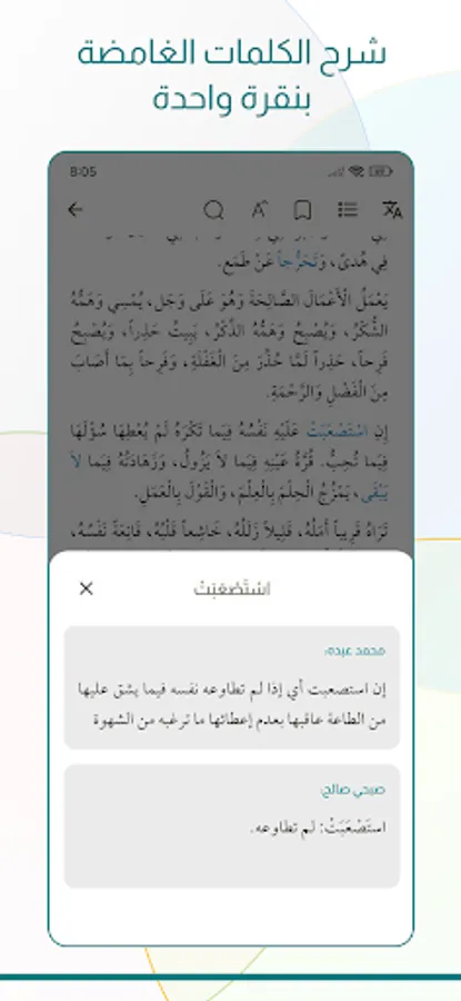 * Explanation of ambiguous terms as found in the explanations of Sheikhs Muhammad Abduh and Subhi Salih.