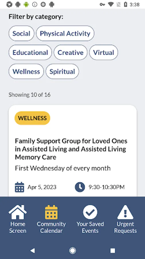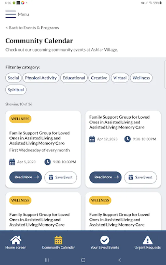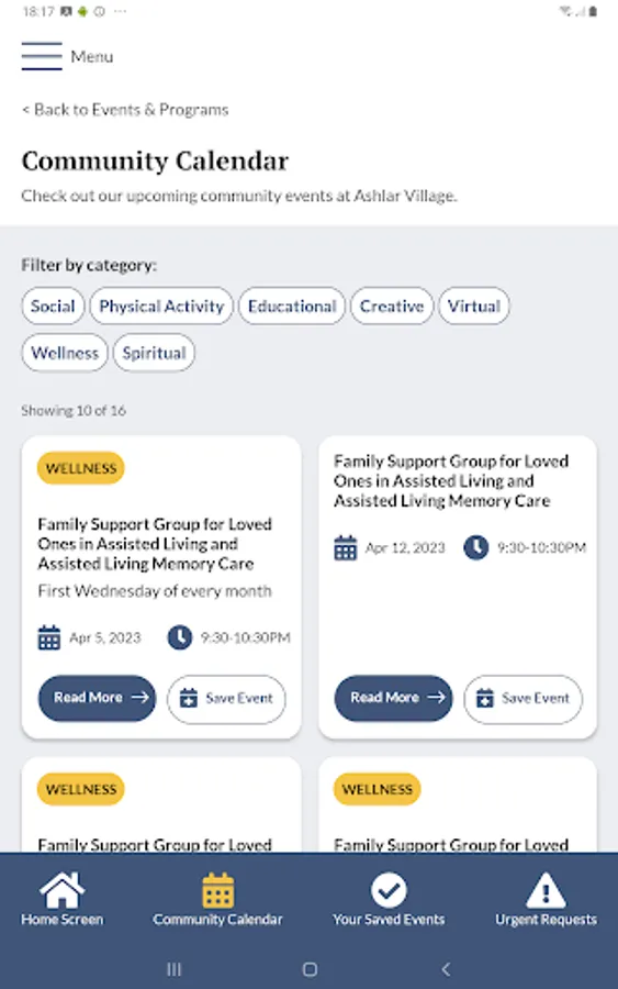 • View your community's calendar. Stay up-to-date with upcoming events - from social gatherings to support groups and more.