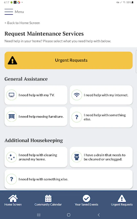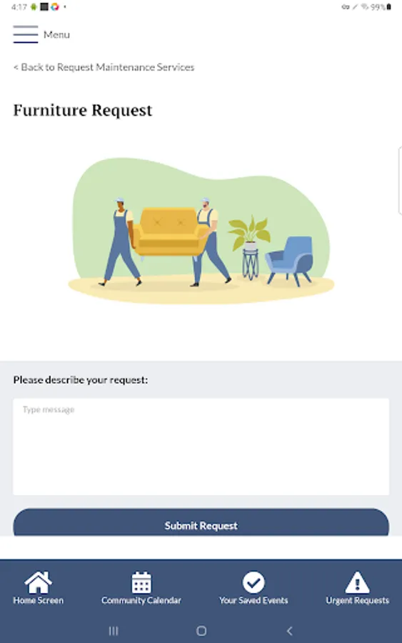 • Quickly submit maintenance requests directly to the Masonicare maintenance team.