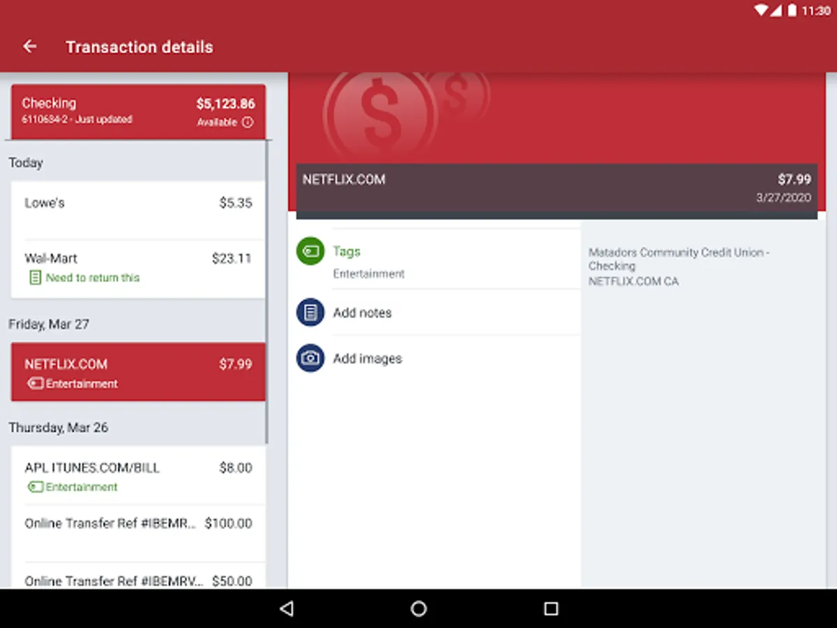 Keep your transactions organized by allowing you to add tags, notes and photos of receipts and checks.