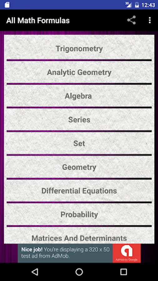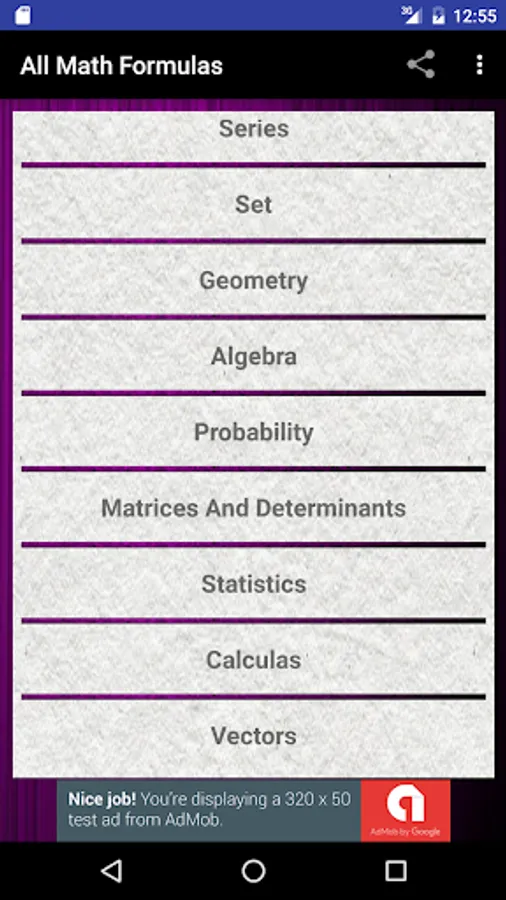 This is the new app that You never ever seen before in this play Store. All essential Math Formula(more than 1500) for all android users with zoomable images. it covers 12 chapters in Offline content(If you are in offline the advertisements will not be appear. sorry if it is annoying). You don't need internet to read formulas. From this app, you will get 1500+ math formulas and equations. With formula, you will get proper diagram, so that you will understand formula easily. You can read formula easily from this mathematics formulas app. Additionally you will get motivational quotes as notification each an every day. so you can start your day by self motivated. If there is any suggestions kindly give feedback to me. and finally this is my first app please support. thank you.