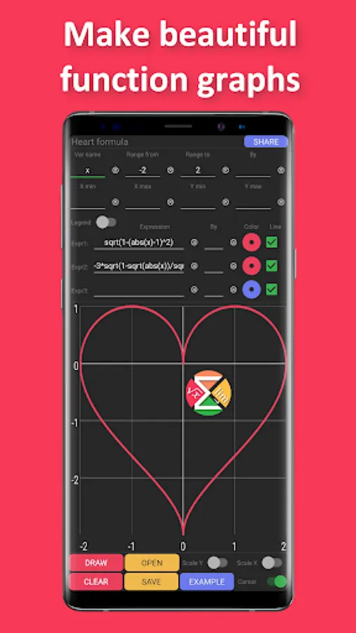 🔹 Beautiful function graphs, set variables, range, expression, interact with the chart!
