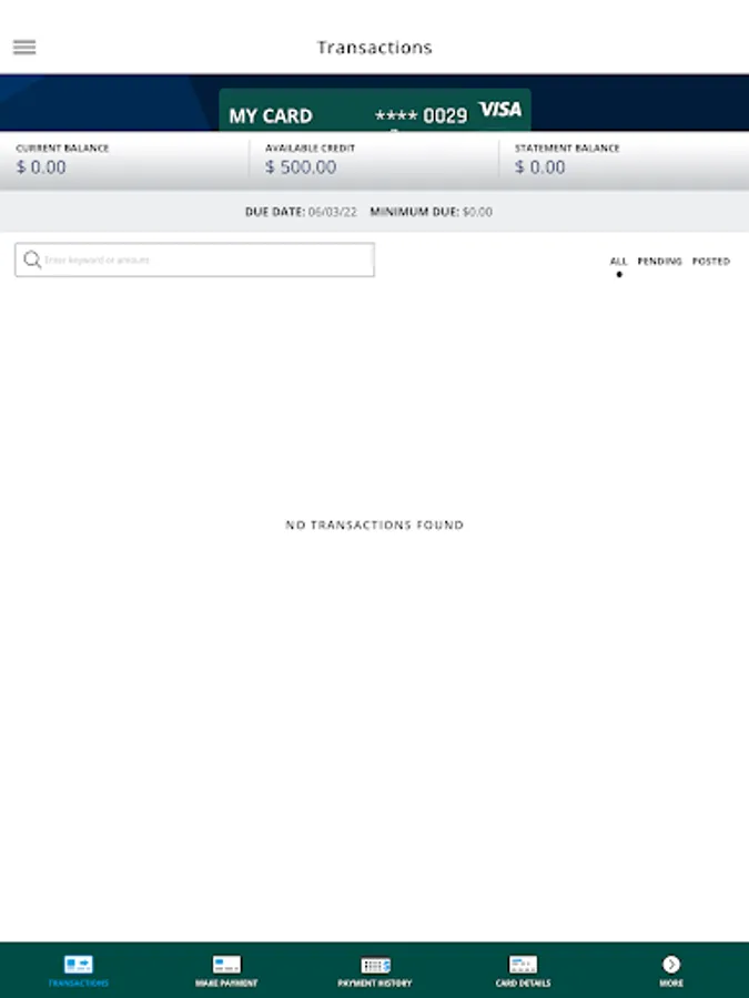 • View recent and pending transactions.