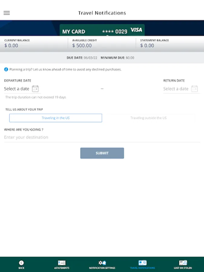• Set travel notifications.