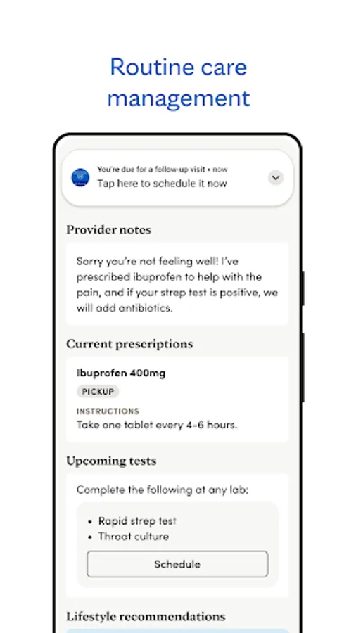 - Receive helpful reminders for labs, follow-up appointments and medication management
