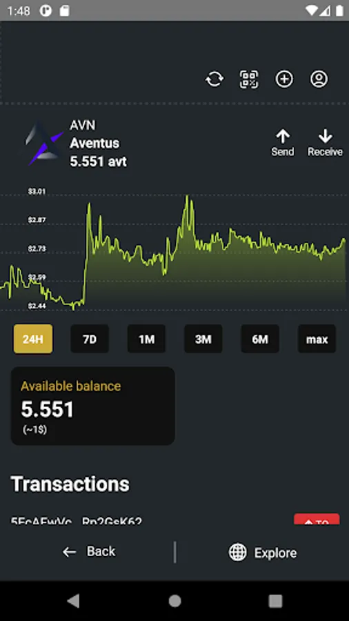 - Balance overview of all supported crypto from different networks and total portfolio value (USD)