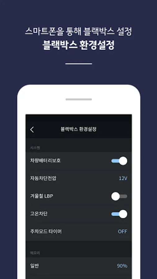 Black box configuration: (camera, time, event, ADAS, system, memory, etc.)