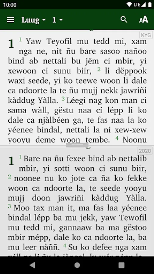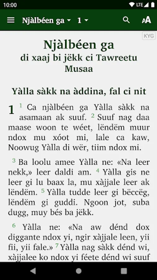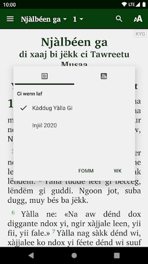 Appli bii mooy Kàddug Yàlla, gi dikke ñaari pàcc: Kóllëre gu jëkk gi Yàlla fas ak nit, ak Kóllëre gu yees, gi mujja wàcc, te ñenn ñi di ko wooye Injiil, mu tekki Xibaaru jàmm. Ñaari tére yooyu, Yàllaa leen wàcce ci nitam ñu sell ñi, kóllëre gu jëkk gi, ñu bind ko ci yawut, gu yees gi, ci làkku gereg. Li ñu bind ci tére yu jëkk ya nag, moom lanu tekki ci wolof.