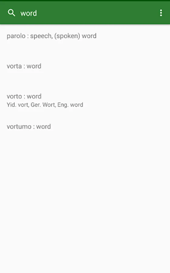 Senreta Vortaro (offline dictionary) is an English-Esperanto dictionary app inspired by the web page Tuja Vortaro. It is designed to be easy to use for beginners.