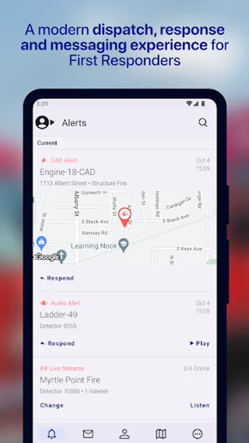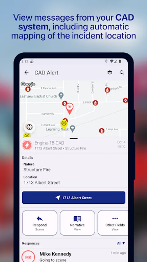 • View CAD alerts sent by the dispatch center