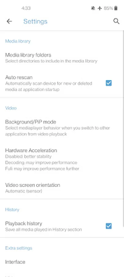 media player 11 has support for multi-track audio and subtitles. It supports auto-rotation, aspect-ratio adjustments and gestures to control volume, brightness and seeking.