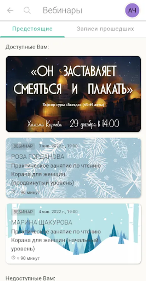 Any questions about the lessons? Ask their teacher and get an answer! In addition, the Academy regularly holds workshops on reading the Koran and open webinars, working online support service.