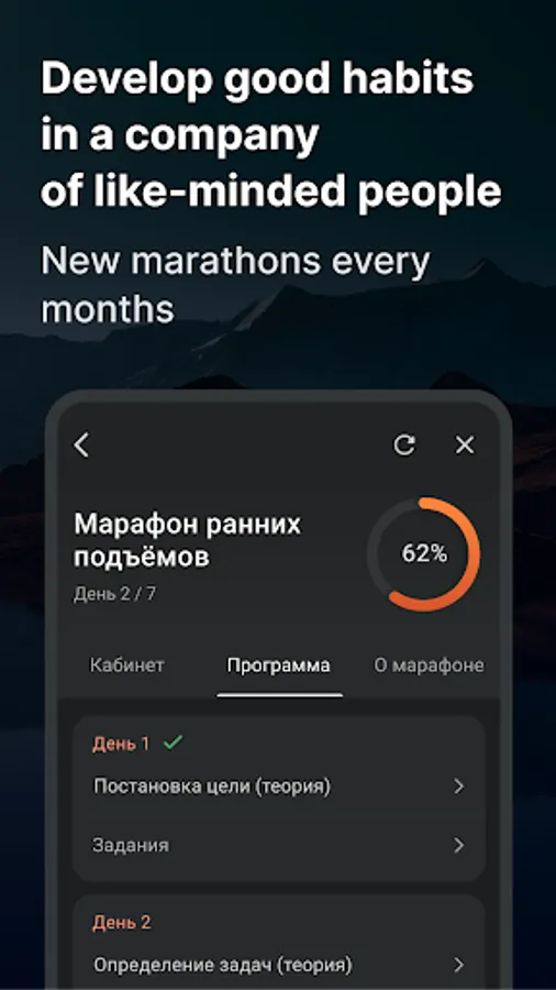 We want meditation and yoga practices to be accessible for everyone and change society positively . Therefore, meditation training with us will always be free, marathons and intensive practices - on donation basis. The application will help you learn a simple meditation technique, develop regularity in yoga practices, as well as explore other useful habits for a harmonious and happy life. Here you will find everything you need: meditation for beginners, marathons of good habits, practices for awareness and self-development, free courses in philosophy and yoga practices.