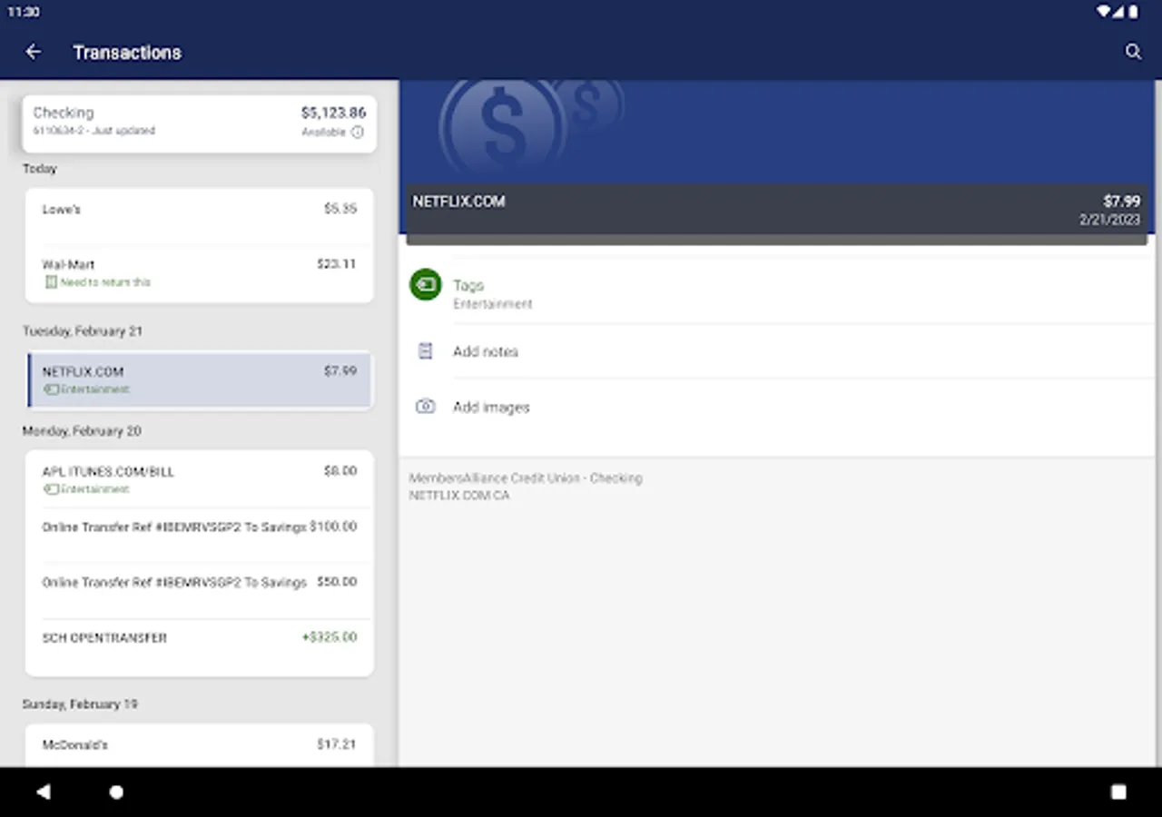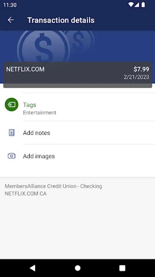 · Keep your transactions organized by allowing you to add tags, notes and photos of receipts and checks.