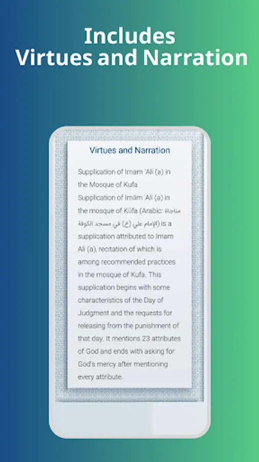 Supplication of Imām ʿAlī (a) in the mosque of Kūfa (Arabic: مناجاة الإمام علي (ع) في مسجد الكوفة) is a supplication attributed to Imam Ali (a), recitation of which is among recommended practices in the mosque of Kufa. This supplication begins with some characteristics of the Day of Judgment and the requests for releasing from the punishment of that day. It mentions 23 attributes of God and ends with asking for God's mercy after mentioning every attribute.