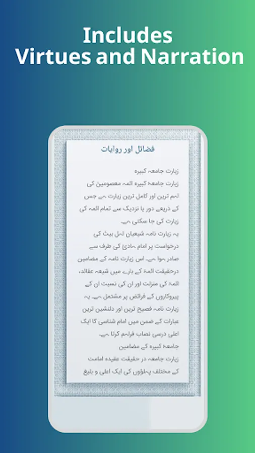 In this ziyarah, Ahl al-Bayt (a) have been described as the rightful successors of the prophet (s) and all Shi'a teachings are explained in a clear language, including the connection between Imams (a) and the Holy Prophet (s), mentioning scholarly, moral, and political merits of Imams (a), their example, the relation between imamate and Oneness of God, the relation between knowing Imams (a) and knowing God, infallibility of the Ahl al-Bayt (a), oneness of their creation, tawalli [friendship], tabarri [rejection], raj'a [second coming] and taslim [surrender]. In this ziyarah, merits of Imams (a) are mentioned in connection with the Qur'an and the conduct of the Prophet (s) in the best way possible.