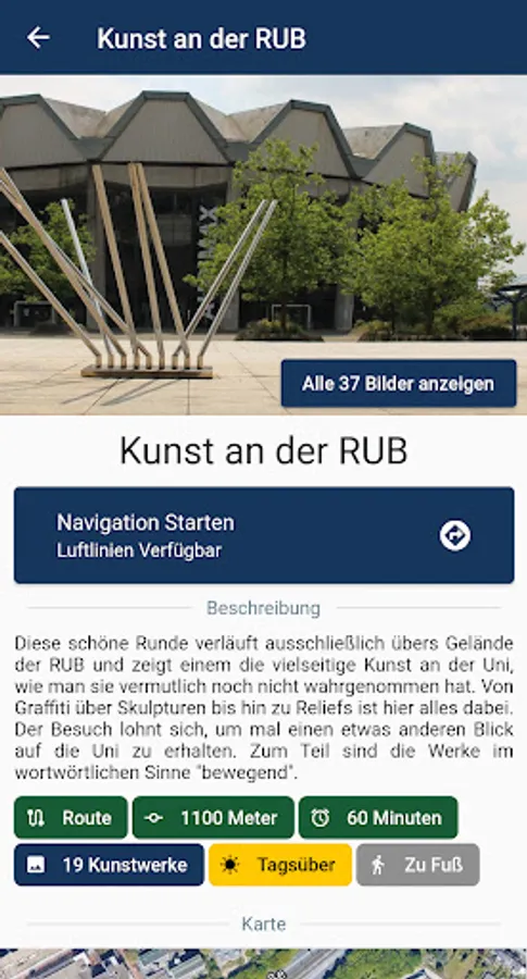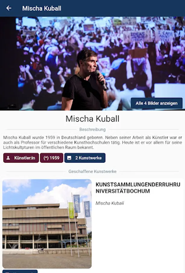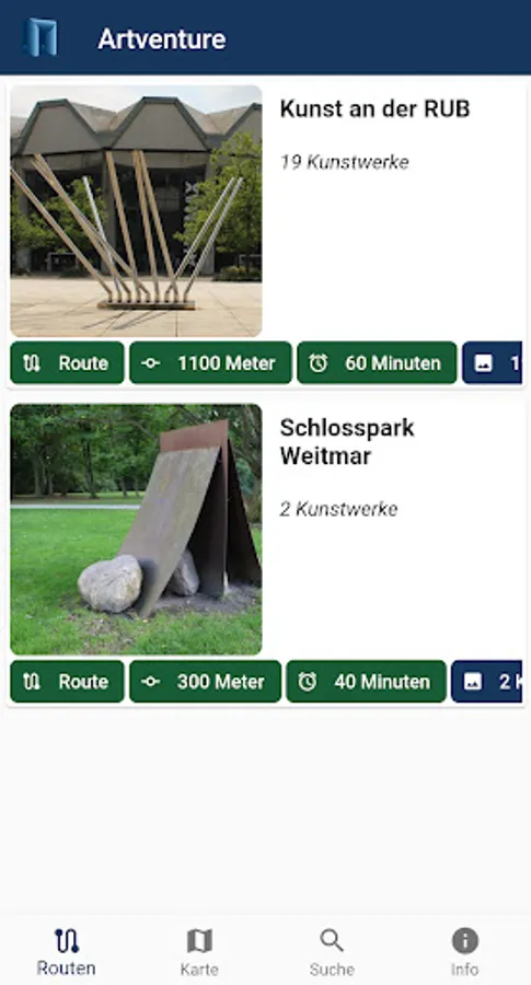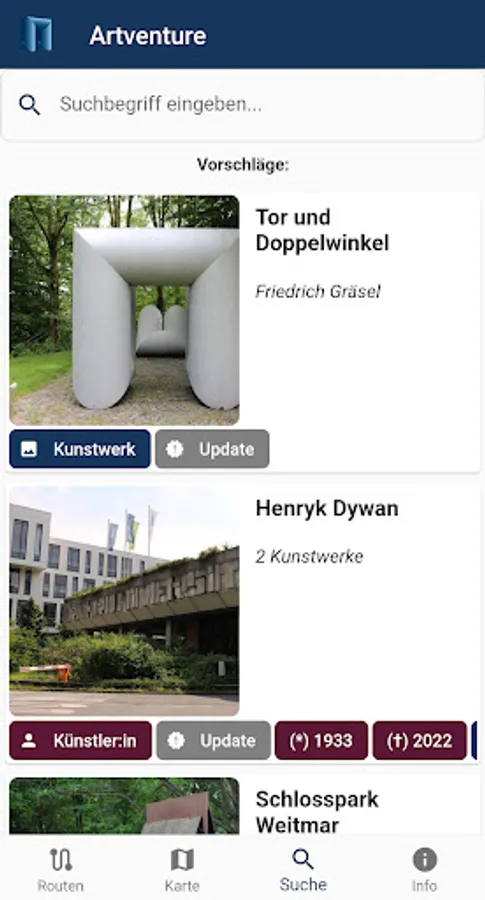 Find artworks near you at a glance. Follow our routes for an unforgettable art experience at your own pace. Learn more about the works of art with the detailed description and further information about the work, artist and era. Just read or output as audio and watch the work - you decide. Each text is written to be understandable for everyone, from young to old. Find public art, street art, galleries, art museums and auction houses and discover your surroundings with new eyes.