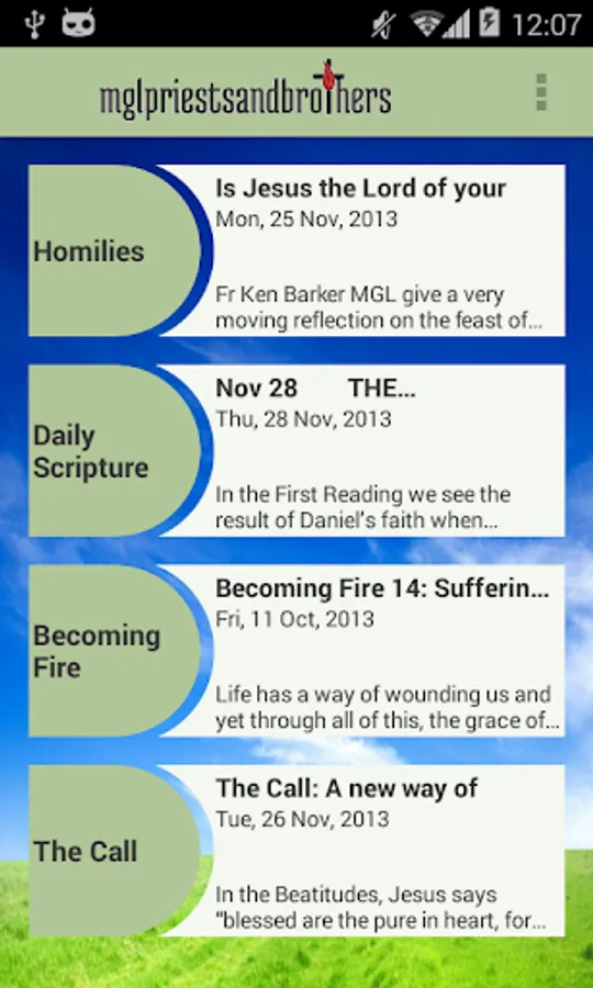 It has daily scriptural reflection and homilies of MGL community priests and brothers, along with The call series and "becoming fire" podcast. These reflections can be easily shared over one's social media. Enjoy this light weight spiritual lifestyle app.