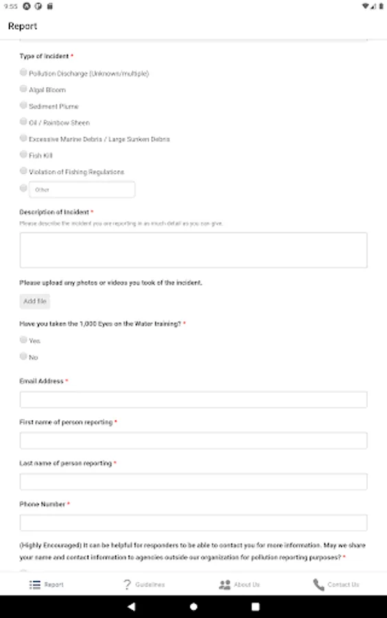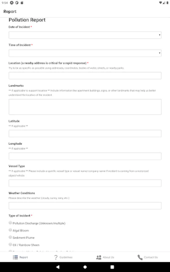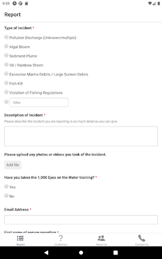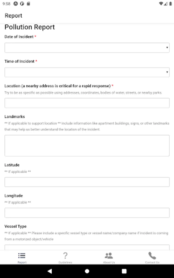 Curious about what you will be reporting? Things like Location (address, coordinates, landmarks), Type of Pollution, Observed Habitat Destruction, Boats/Companies Involved, Photos/Videos, and Time will be characteristics you will need to fill out a complete report! Our reporting form embedded within the app will assist with easy completion!