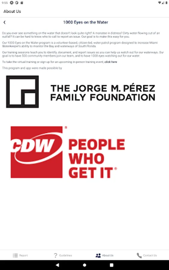 We are a small staff with well over 470 miles of waterways, including coastline, canals, rivers, and other water bodies, in Miami Dade and Broward counties, so we need your help to make sure water pollution doesn’t go unnoticed! This app supports our growing patrol team (1,000 Eyes on the Water) and is a valued part of our organization that allows us to ensure pollution issues are found over a large geographic range.