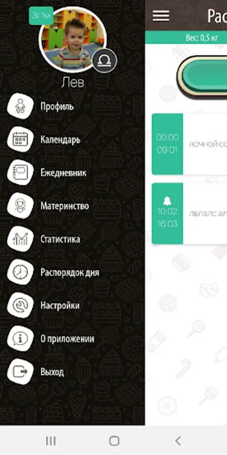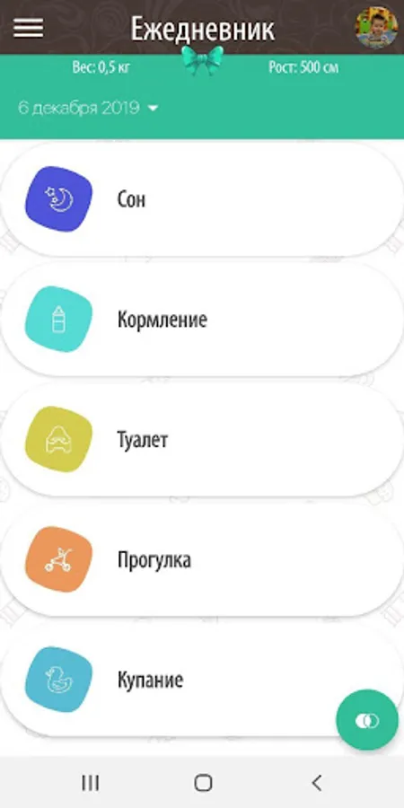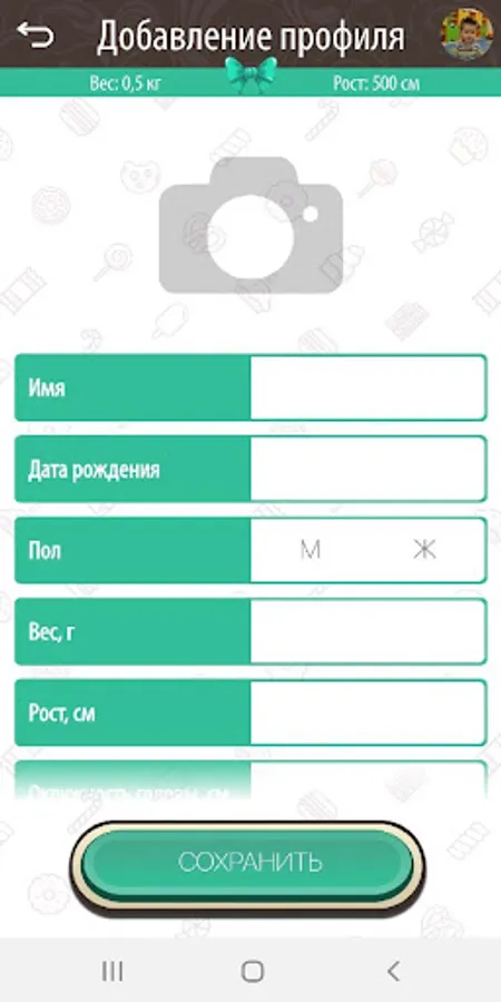 - creation of a profile of a child or several children, add a photo from the gallery;