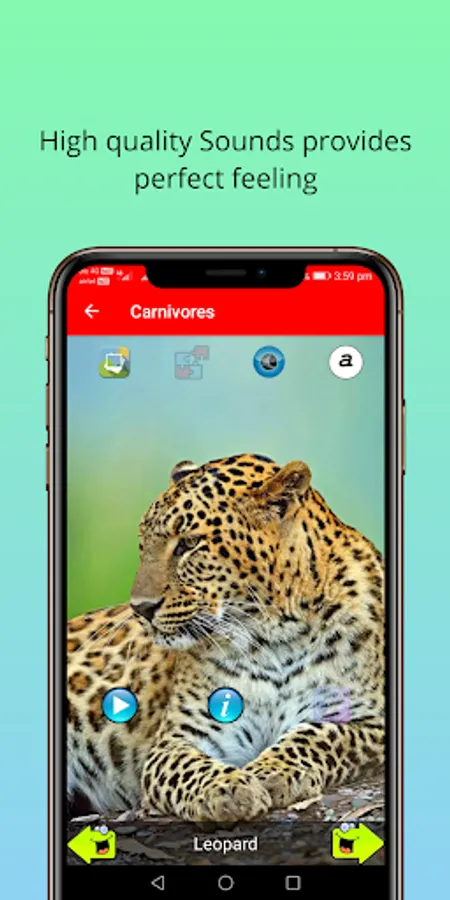 With this animals sounds and pictures, we can easily entertain with easy navigation. This animal sounds app offers High Definition animal pictures and by a simple touch on animal images it produces each animal sounds respectively. The new swiping features also helps to change the animal sounds and pictures one by one.