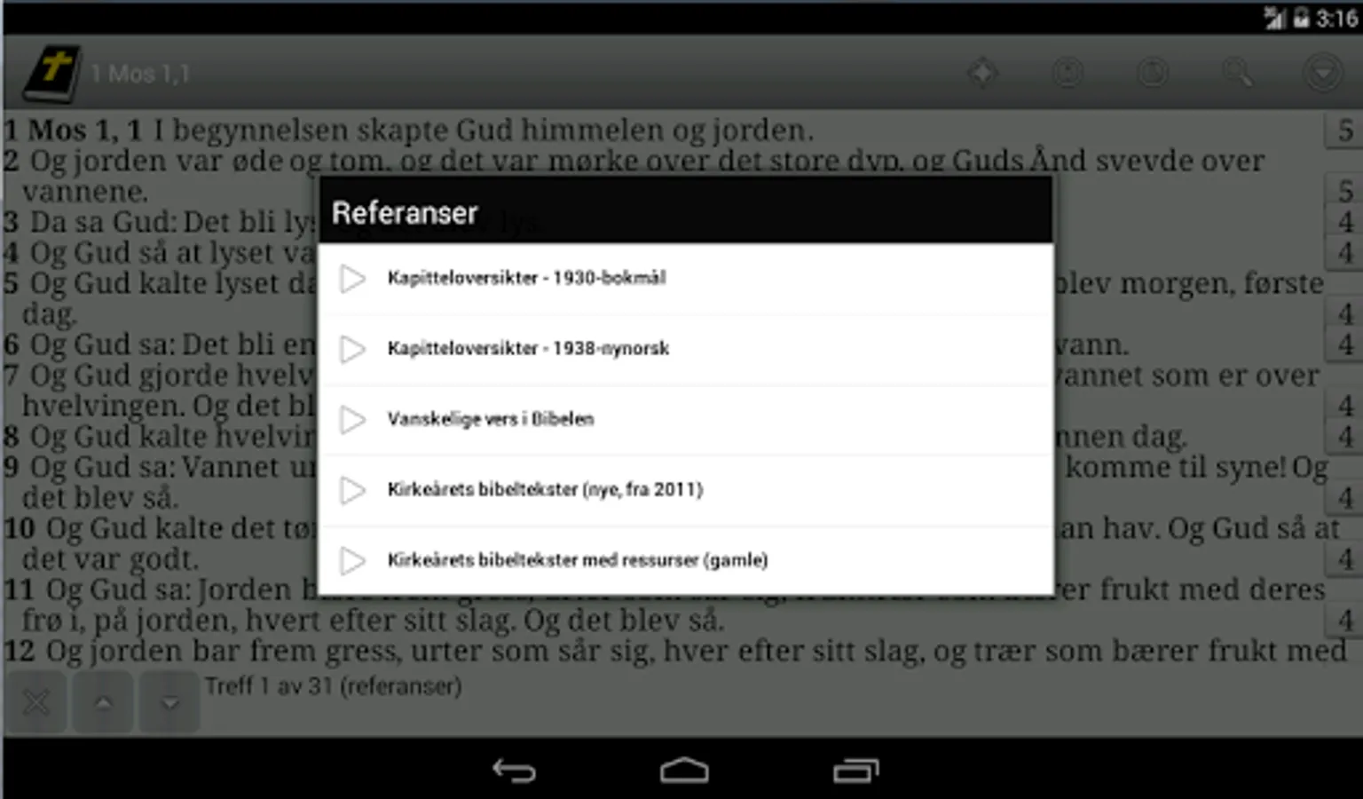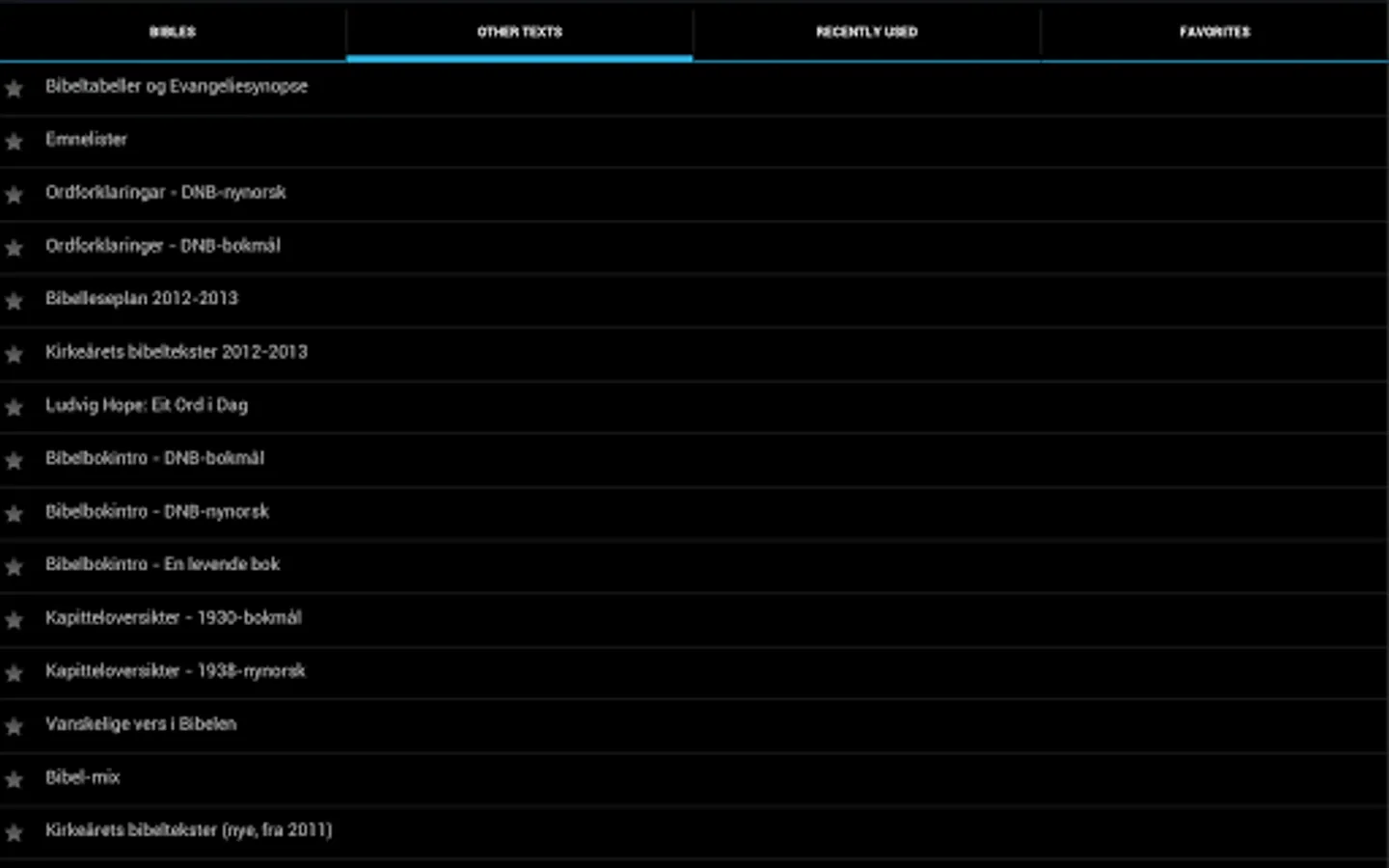 Bible Study software for norwegian users. Contains some Bibles (1930-Bible, 1921-Bible, some modern NT's) and a handfull of other texts. This program can also use SigveSakers 150 "DataBibelen" texts (Bibles, dictionaries, devotional books, etc.) using the same password as DataBibelen.