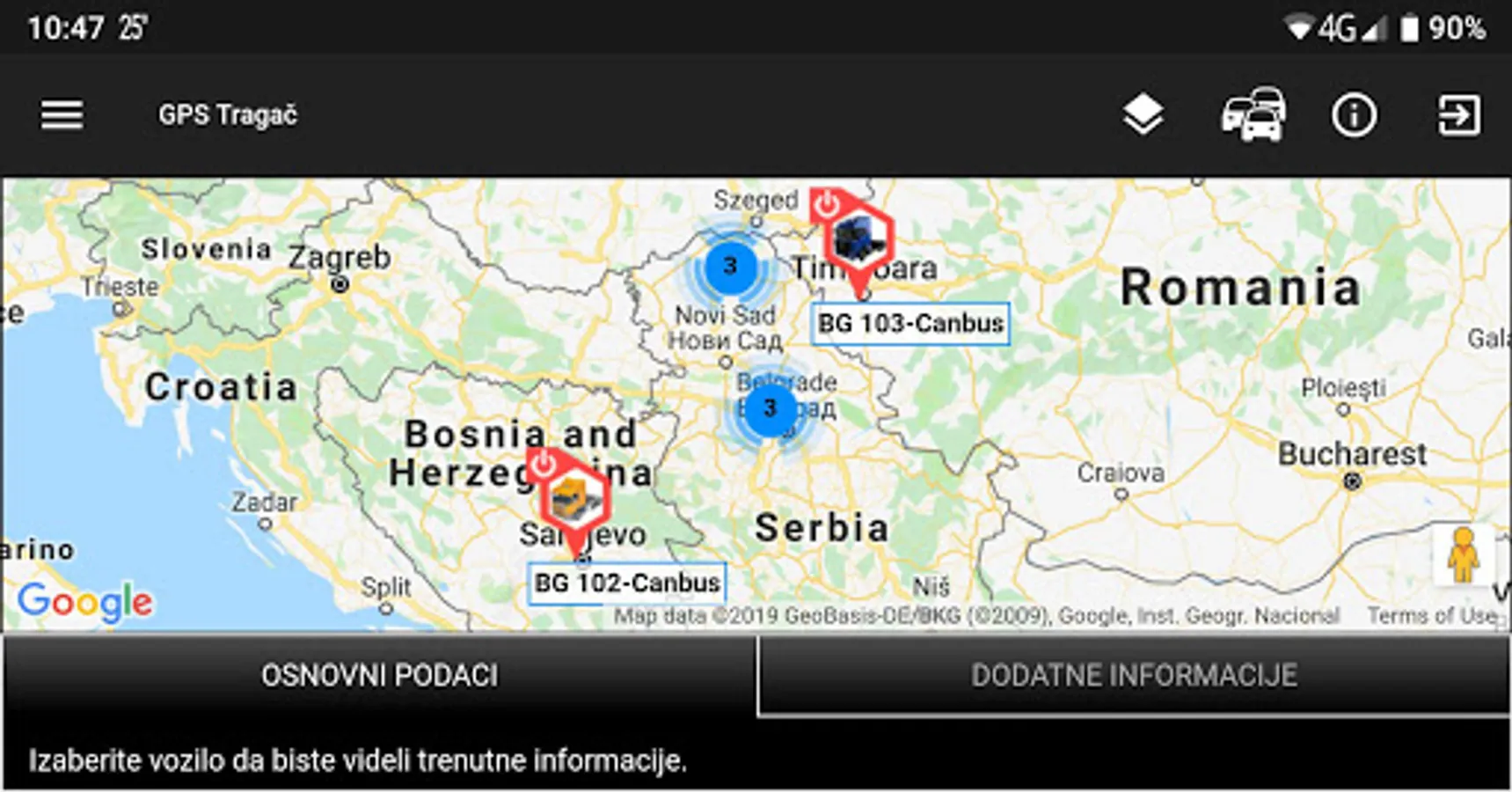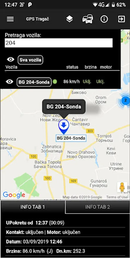 "GPS Tragač" application is intended for Microsys Plus Telematiksystem users.