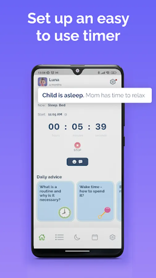 The app also tells you when and why your baby might start to be cranky and when to start the bedtime routine, even if there are no visible signs of fatigue.