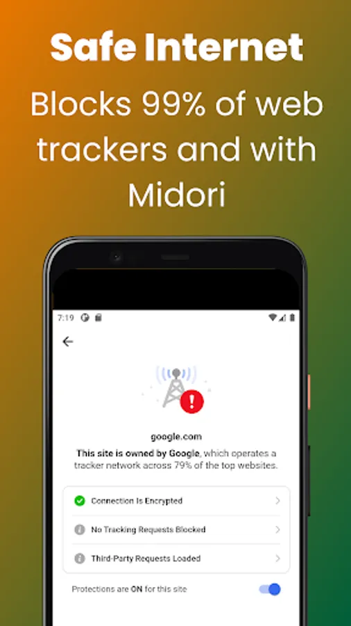 Midori is a light, fast and safe web browser that protects the privacy and anonymity of our users, so browsing is 100% private.