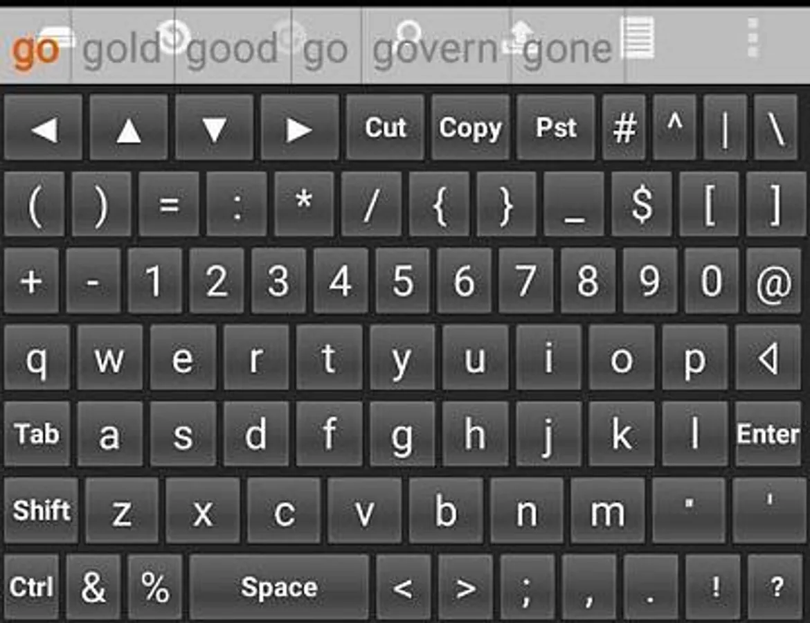 Keyboard Plus Plus is the keyboard of choice for the programmer. It has almost all the keys of a real keyboard. So you don't have to switch layout for symbol or numeric keys. There are arrow keys and designated keys for cut, copy, paste and clipboard. It is really helpful when you edit any file.