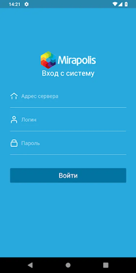 * To enter the application, use the data of your account in the Mirapolis system. Server address is the address that you enter in the browser.