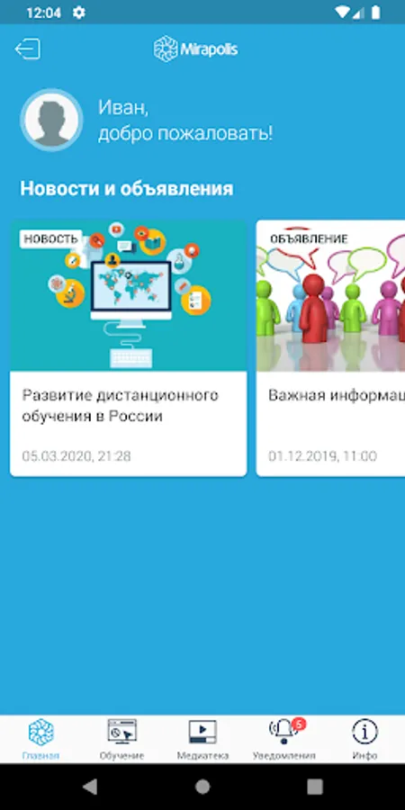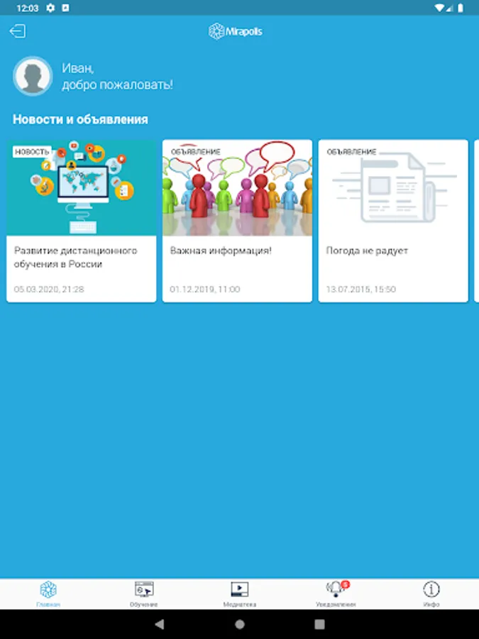 This is the Mirapolis LMS distance learning system application with which you can continue to study at any time, in a place convenient for you.