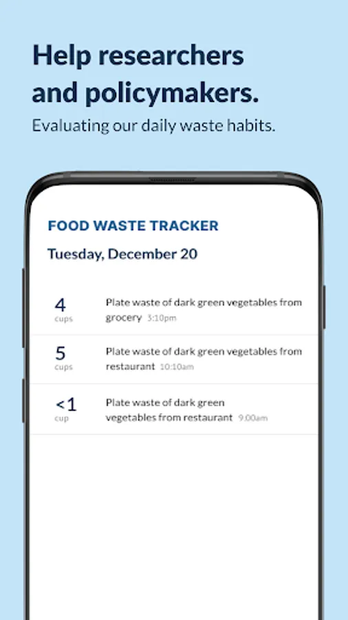 While researchers know much food is lost or wasted in the food supply chain, data about household food waste is very limited. This app is part of a study that aims to quantify the amount of food which gets wasted across American households.
