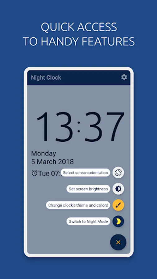 NOTICE: You can try free version of this app but it contains ads: https://play.google.com/store/apps/details?id=org.mivoligo.nightclock.free