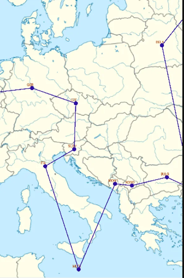 From the settings, pick a level (easy, medium, or hard) for a game with fewer or more cities. Also choose the computer solution time. A shorter computer solution time may generate a less than optimal solution.