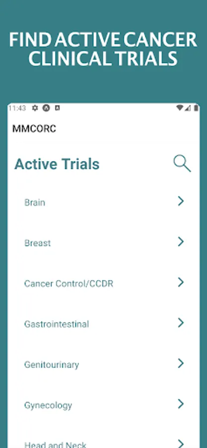 MMCORC lets you find active cancer clinical trials in the local Metro Minnesota area! Browse for trials by tumor type or search with keywords in the MMCORC app! Consult resources about MMCORC clinical trials! Find MMCORC partnered locations on a map! Whether you are just considering a trial or are actively enrolled, MMCORC has something for you!