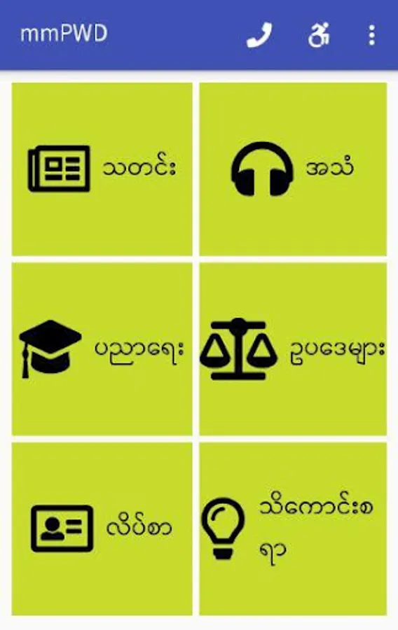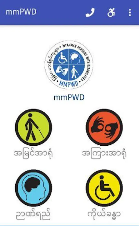 mmPWD is designed and developed to improve Myanmar-speaking Persons with Disabilities’ access to information. mmPWD aims at connecting PWDs across Myanmar, and helping them fight for their rights. Development of this mobile application was funded by U.S. Agency for International Development (USAID) through partnership with FHI 360.