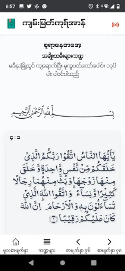 This is a Holy Quran app in Burmese (Myanmar) Language.