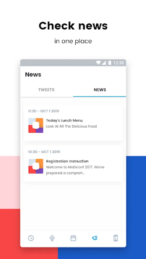 With the Mobiconf app attendees are always up-to-date, and they feel more welcome at the event. You can easily check what’s going on, reply to the latest tweets or just take a look at conference updates in the “News” section.