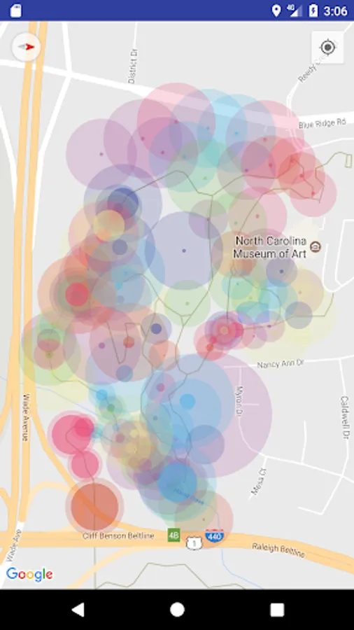Developed by artists Kael Greco and Gregg Perkins, Moede NCMA is an interactive musical artwork for users within the North Carolina Museum of Art park. A musical score has been composed in response to the landscape and placed into geographical zones in the park for users to experience. Moede creates a unique musical composition for each user as they as they move through the terrain of the park. There are also areas within the composition where the phone microphone turns on to loop the local sound into the mix of music.