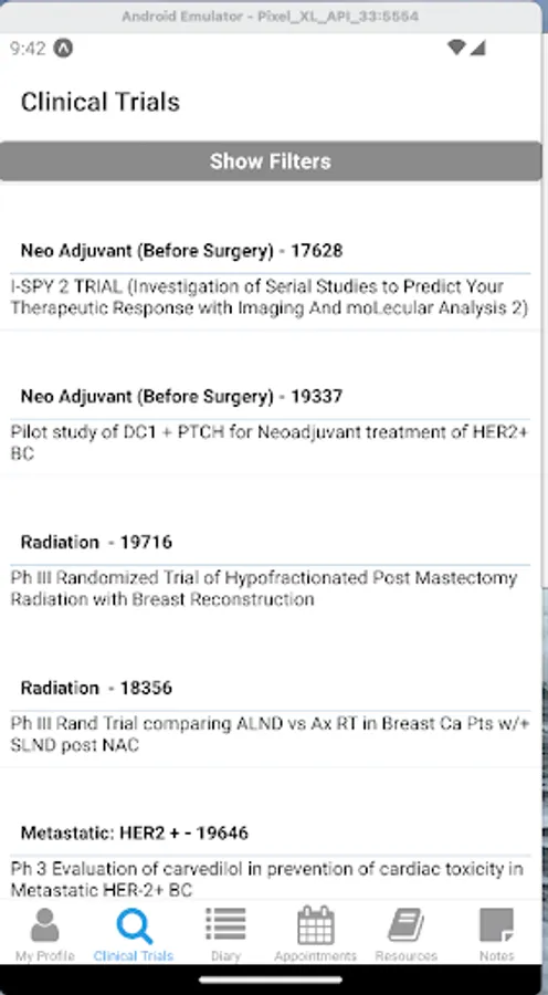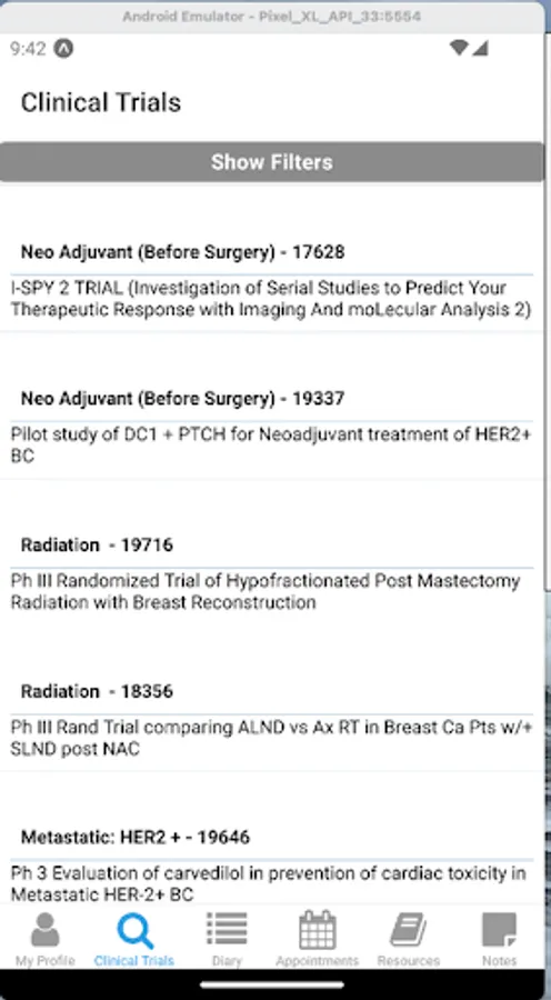 PRIMA (Patient Research Information Management Application) is a multi-use application designed to raise awareness about breast cancer clinical trials at Moffitt Cancer Center. It helps patients stay organized with their treatments, and empower patients to communicate with their care team more effectively.