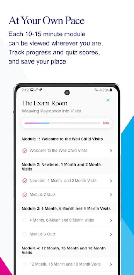 LEARN AT YOUR OWN PACE—Track your progress on the 13 modules. Your progress will be saved whether you choose to continue on your phone or your computer, watch the curriculum all at once, or take your time.