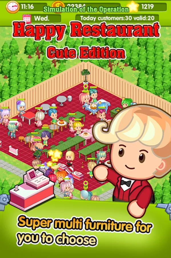HappyRestaurant cute edition is an alternate version of HappyRestaurant. It brings a whole new set of characters and furnitures.