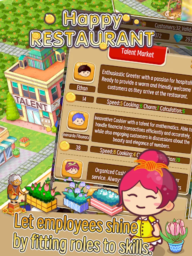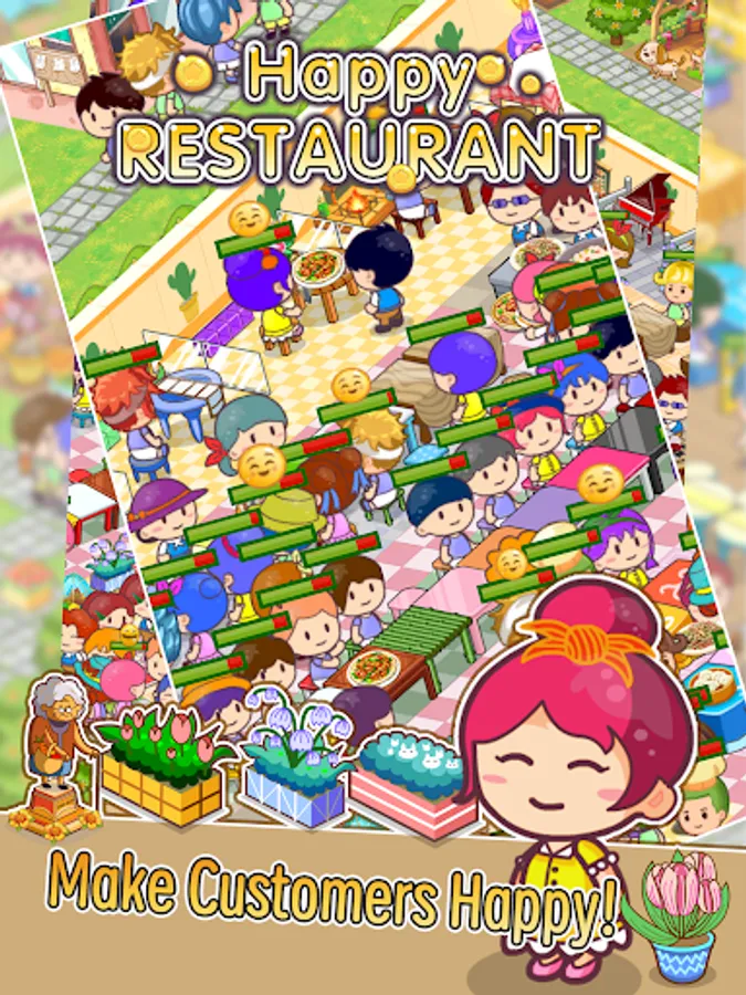 Customer satisfaction is key. They have limited patience. Fast and good service keeps them happy. Swift waiters are a must, and talented chefs make them even more satisfied. Happy customers not only spend, but also generate happy points. More happy points allow the diner to expand!