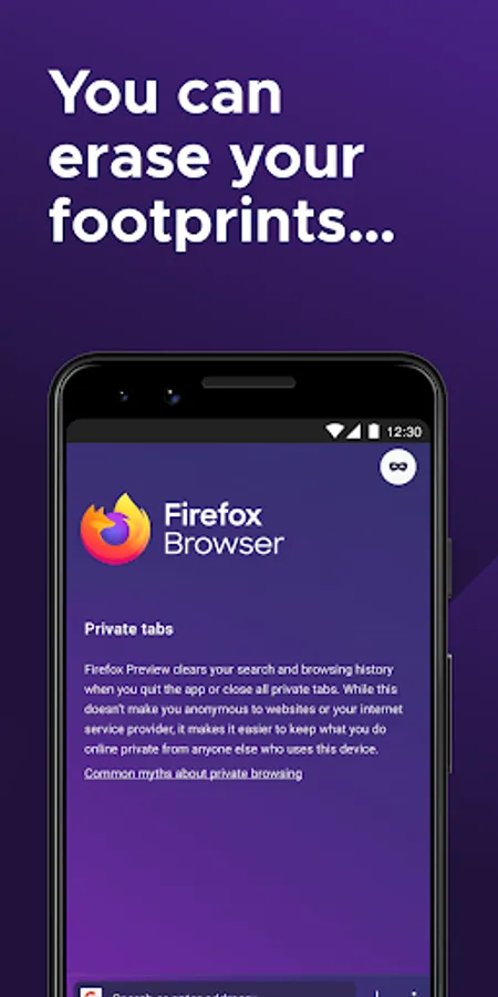 Firefox gives you greater privacy protection while you’re on the web. Block third-party cookies and unwanted ads that follow you around the web with Enhanced Tracking Protection. Search in Private Browsing mode and you won’t be traced or tracked — your private browsing history is automatically erased when you're done.