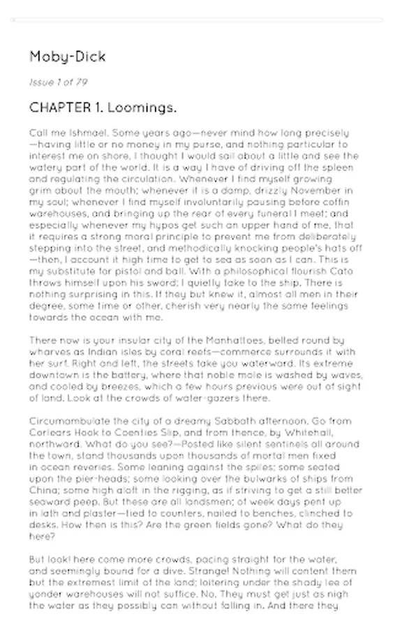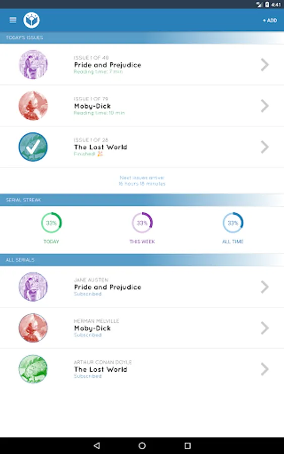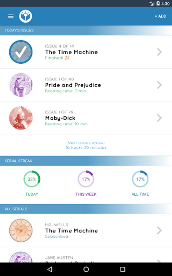 Serial Reader helps you fit classic literature into your busy life: Choose from more than 850 classic books and receive a new issue every day. Each issue can be read in 20 minutes or less. Read the best classic books in your spare time!