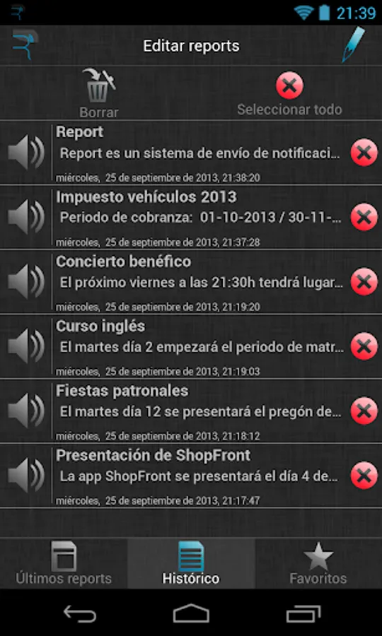 - Receiving Reports, the user is notified in the notifications window device by tone or vibration.