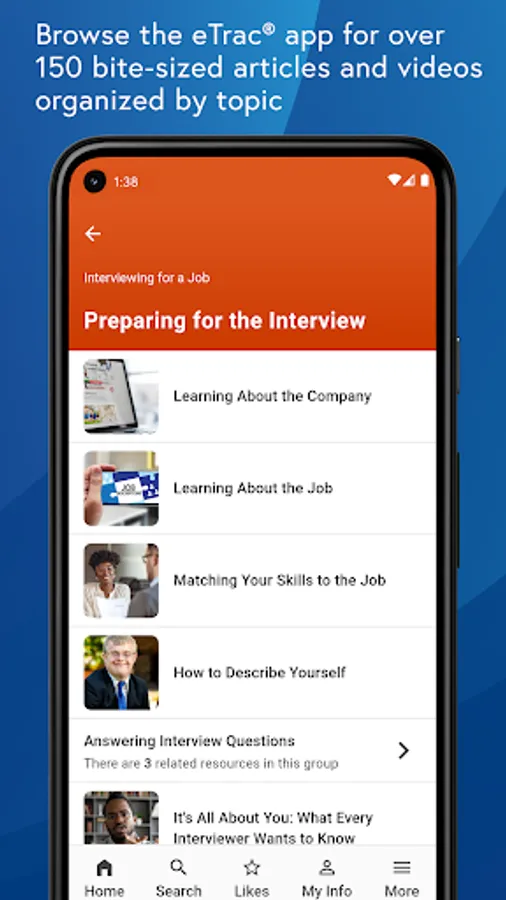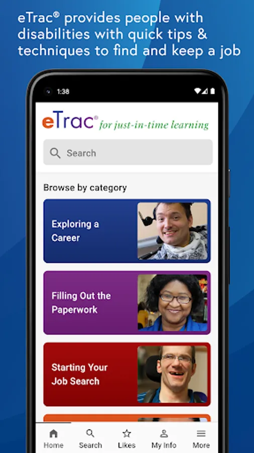eTrac for Just-in-Time Learning is a new app that can be installed on smartphones and tablets to provide job seekers with quick tips and techniques through a library of job seeking resources available in the eTrac for Job Seekers with Disabilities curriculum.