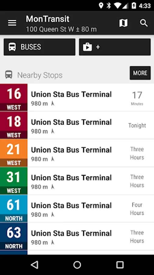 Once this application is installed, the MonTransit app will display buses information (schedule...).